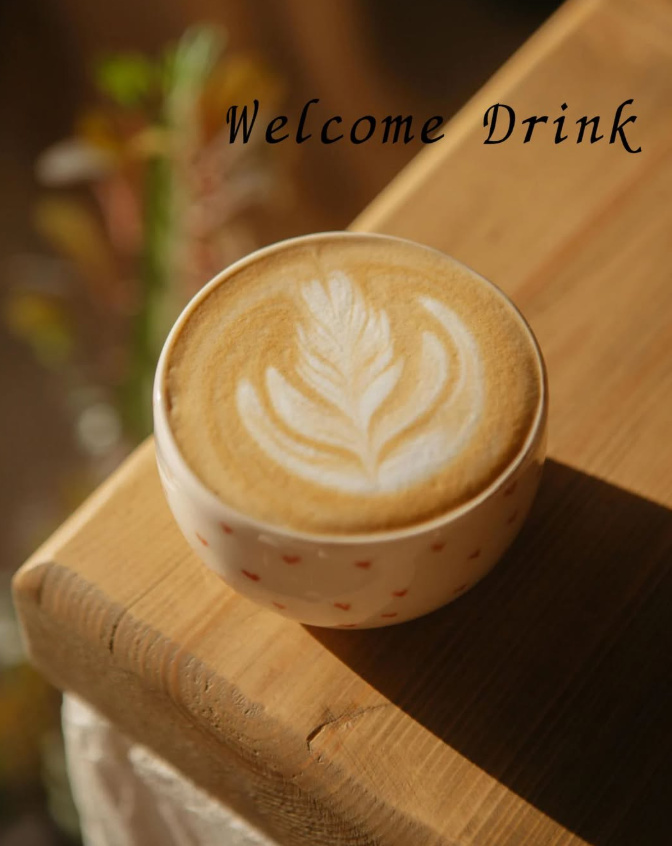 ※エスプレッソコーヒー、アイスコーヒー、カフェモカ、カカオリッチカロリーオフ、オニオンスープ、コンポタージュ、コーラ、メロンソーダ、Qooすっきりオレンジ、カルピス、野菜と果実の健康レシピ、烏龍茶、炭酸水 (種類が変わる場合もあります) ほっとひと息♪ウェルカムドリンク!